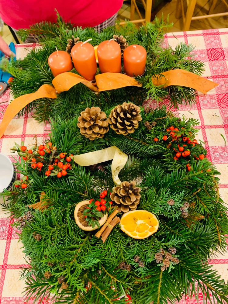 Wir gestalten Tür-und Adventskränze, sowie Gestecke passend zur Adventszeit unter Anleitung unserer Kräuterpädagogin mit Naturmaterialien.